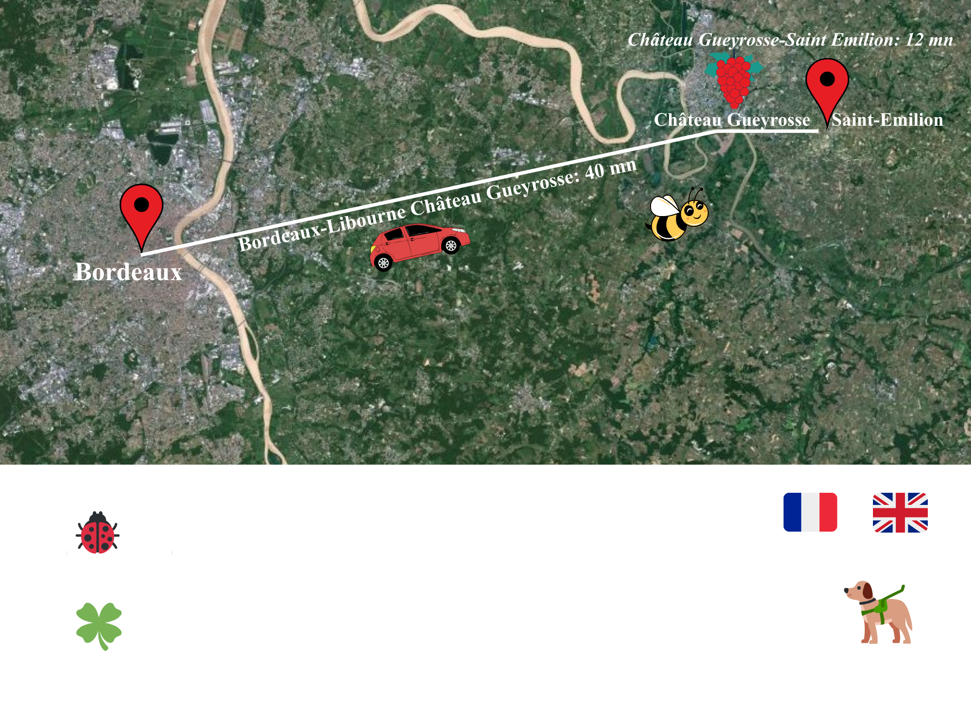 We are located at 40 minutes drive from Bordeaux and 12 minutes drive from Saint Emilion